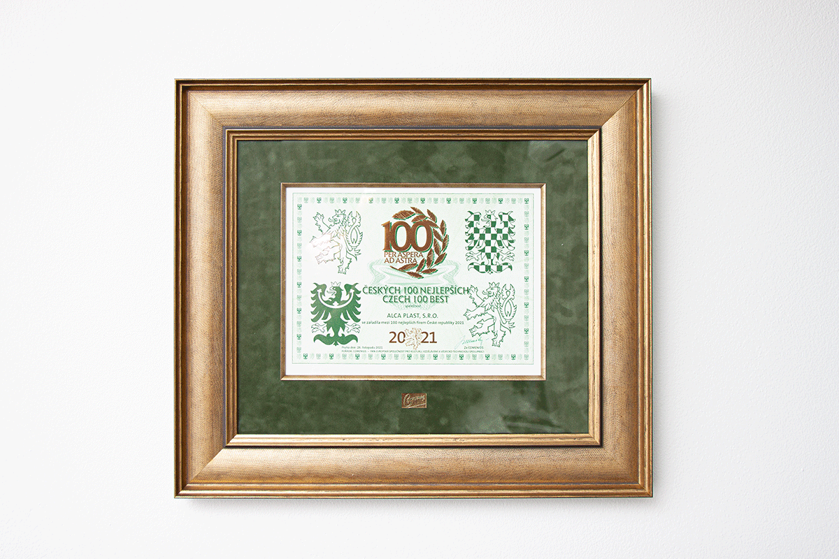 Peti put zaredom, Alcaplast je nagrađen na takmičenju Najboljih 100 Čeških Kompanija. Uprkos aktuelnom vanrednom stanju i povezanim restrikcijama, ceremonija se odigrala u skladu sa planom u Španskoj Dvorani Praškog Dvorca. Lukaš Vozdecki je preuzeo nagradu u ime vlasnika kompanije Radke Prokopove i Františeka Fabičovica.