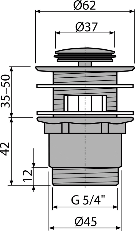 Gornji deo sifona za umivaonik CLICK/CLACK 5/4" metalni sa prelivom, mali čep