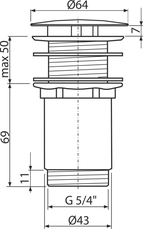 Gornji deo sifona za umivaonik 5/4" metalni, veliki čep bez zatvaranja, za umivaonike bez preliva, bela-sjaj