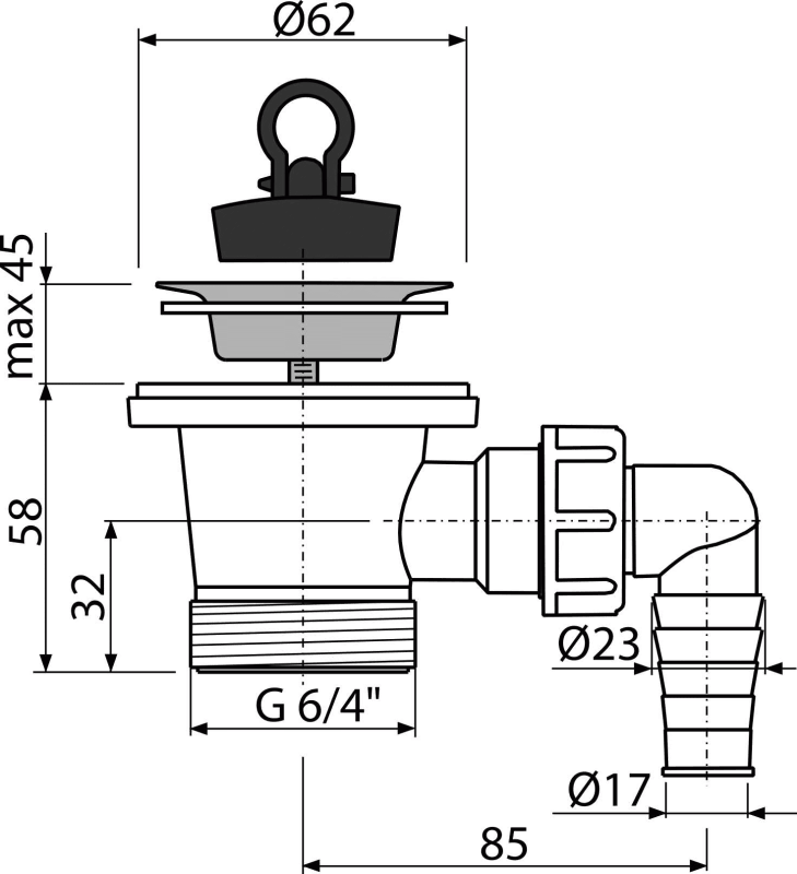 Gornji deo sifona za umivaonik 6/4" sa nerđajućom mrežicom DN63 i priključkom