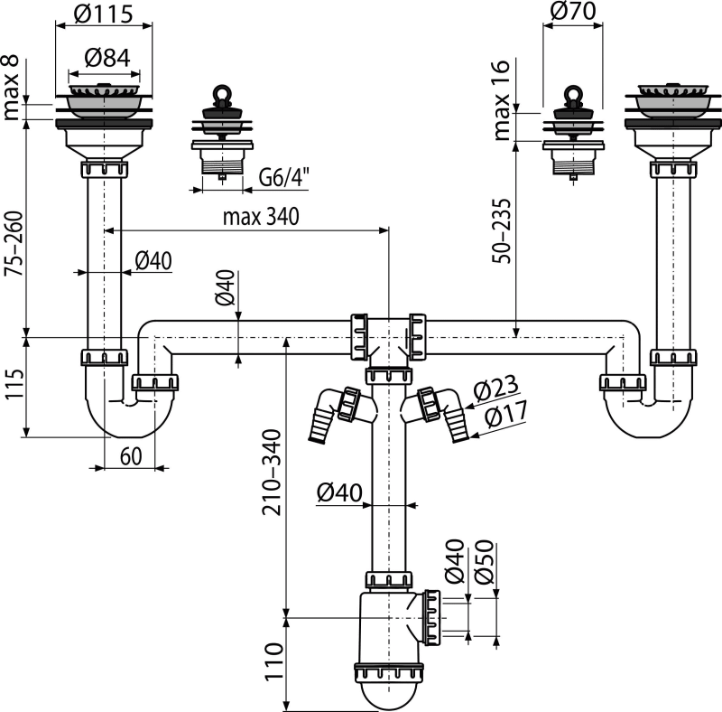 - Pojedinačni delovi mogu se koristiti kao rezervni delovi za sifone za sudopere