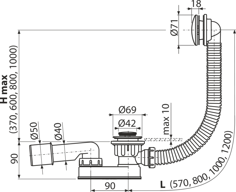 Sifon za kadu CLICK/CLACK, mali čep, metal