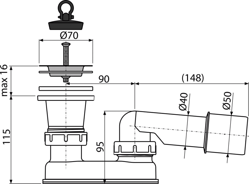 - Za tuš kade sa odvodnim izlazom Ø50 mm
