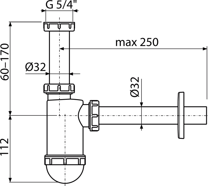 Sifon za umivaonik DN32 sa spojnicom 5/4"