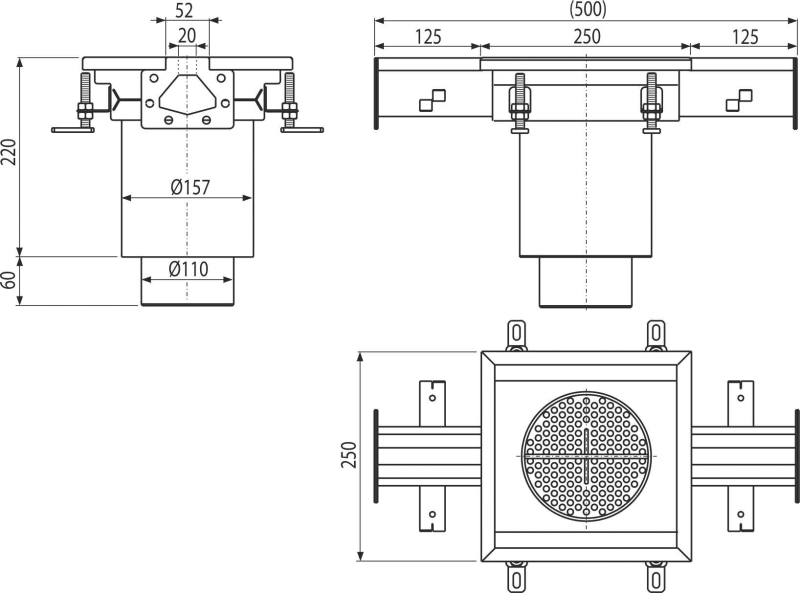 Industrijski tačkasti slivnik sa prorezanim ulazima 250x250, inox AISI 316L