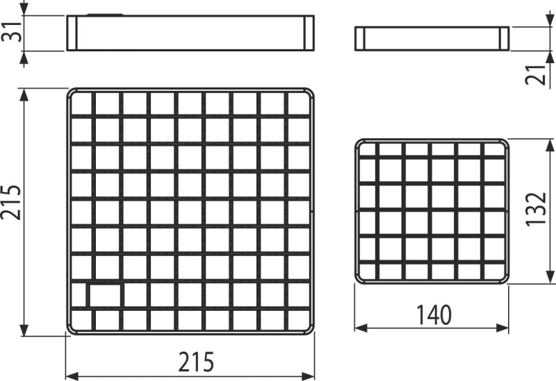 • Dimenzije rešetke 215×215 mm, 132×140 mm
