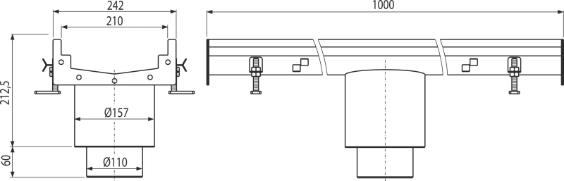 • Materijal podnog slivnika: nerđajući čelik 1,5 mm, DIN 1.4301