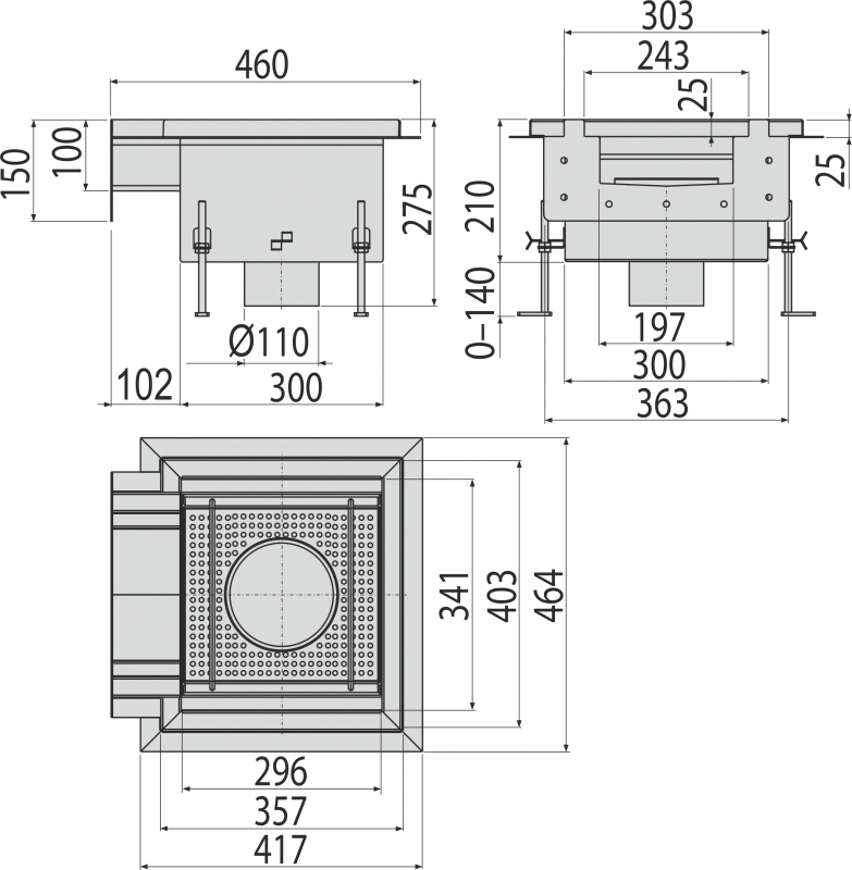 - Materijal podnog slivnika: nerđajući čelik 1,5 mm, DIN 1.4404