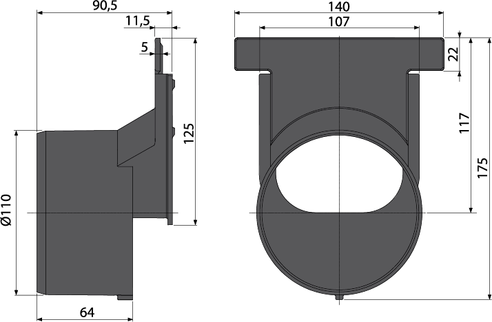 • Koristi se za horizontalno spajanje drenažnog kanala na sistem odvoda DN110 mm