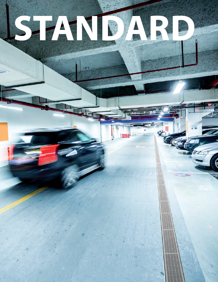 - Za odvodnju površina s povremenim prolaskom automobila, trotoara, pešačkih zona i sličnih površina za putničke automobile