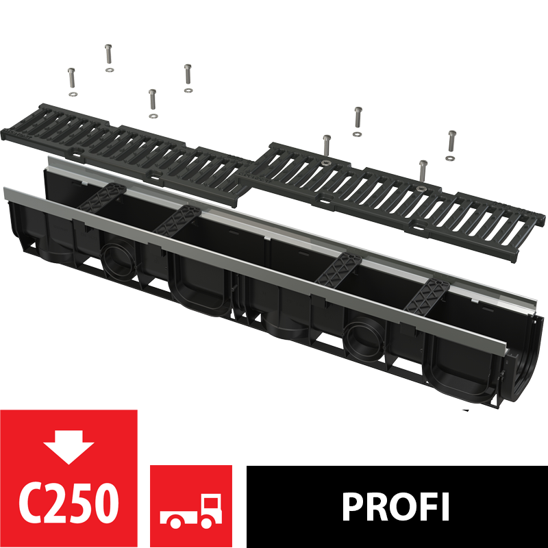 Spoljna kanalica 100 mm sa metalnim ramom i livenom gvozdenom rešetkom C250