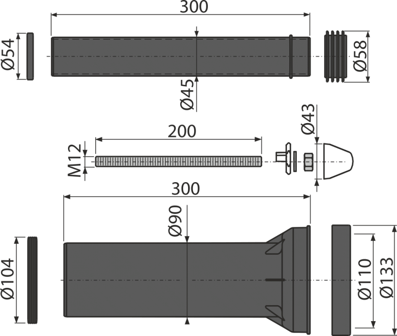 | M0023-ND | Rubber pipe sealing 45×58×25 (WC systems) |