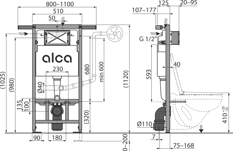 - Za ugradnju zidnih WC školjki sa priključnim korakom od 180 mm ili 230 mm