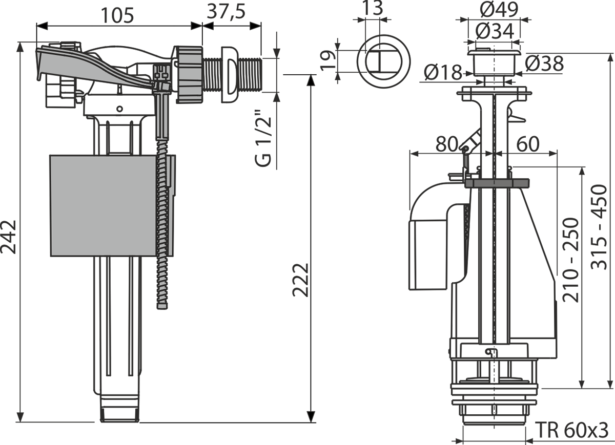 • Dizajn omogućava optimalno podešavanje visine ventila prema visini vodokotlića