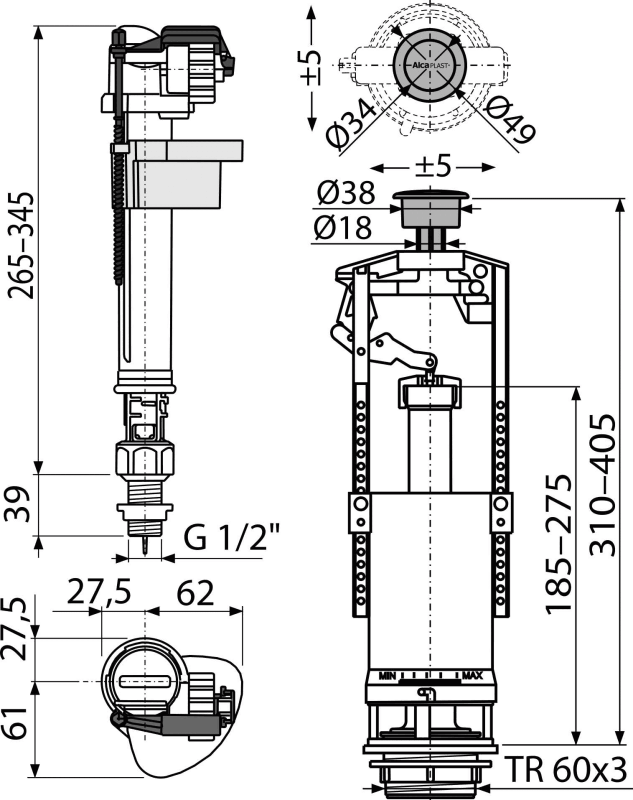 • Dizajn omogućava optimalno podešavanje visine ventila prema visini vodokotlića