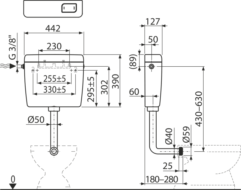 | Kada se instalira na visokomontažnom vodokotliću, sistem STOP nije funkcionalan | |
